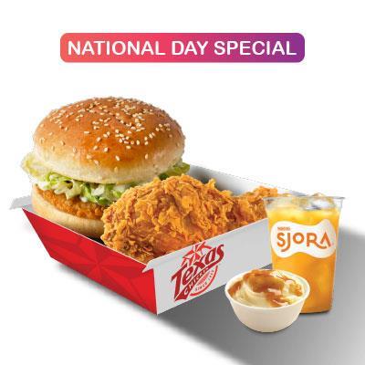 1 Classic burger 1 Chicken (spicy/original) 1 Reg Mashed Potato 1 Reg Sjora Mango Peach