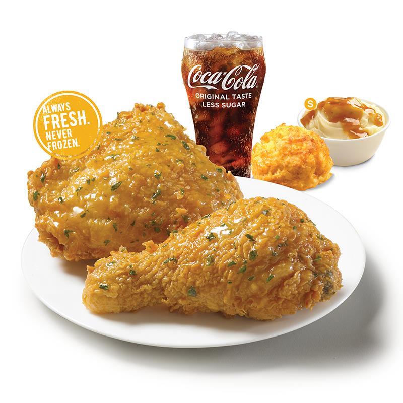 This set includes: - 2pc BHerb & Garlic Chicken - 1 Small Mashed Potatoes - 1 Honey Butter Biscuit - 1 Regular Coca Cola